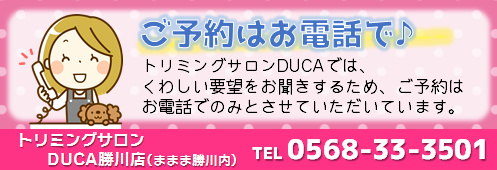 トリミングサロンDUCA勝川店は、勝川駅近くの人気店が集う商業施設【ままま勝川】内にあるトリミングサロンです。