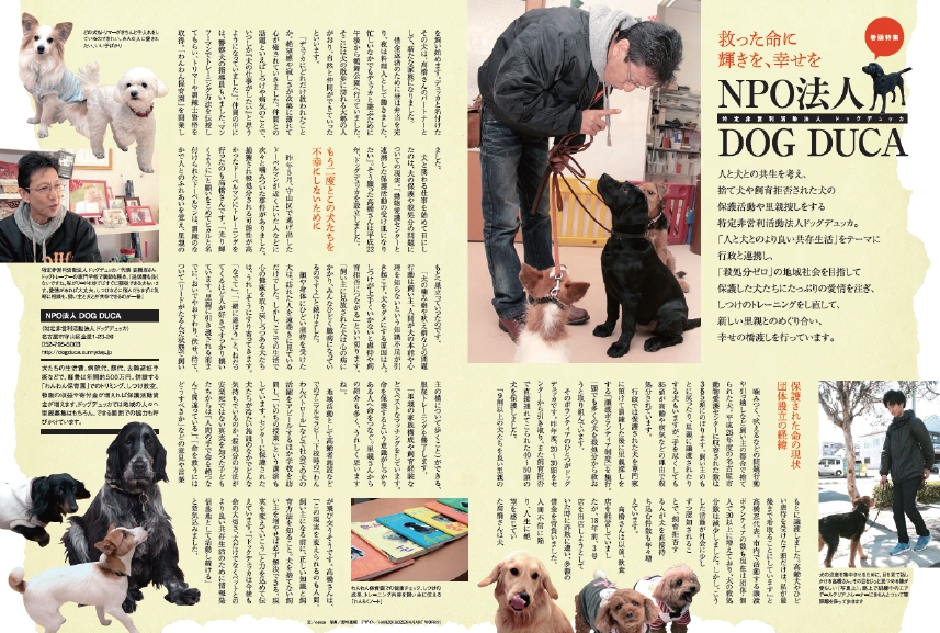 NPO法人DOG DUCAは、代表である髙橋が「DOG DUCA」を始めた2001年より犬の保護活動を始め、名古屋市の「譲渡ボランティア制度*」開始に合わせ2010年よりNPO法人化しました。