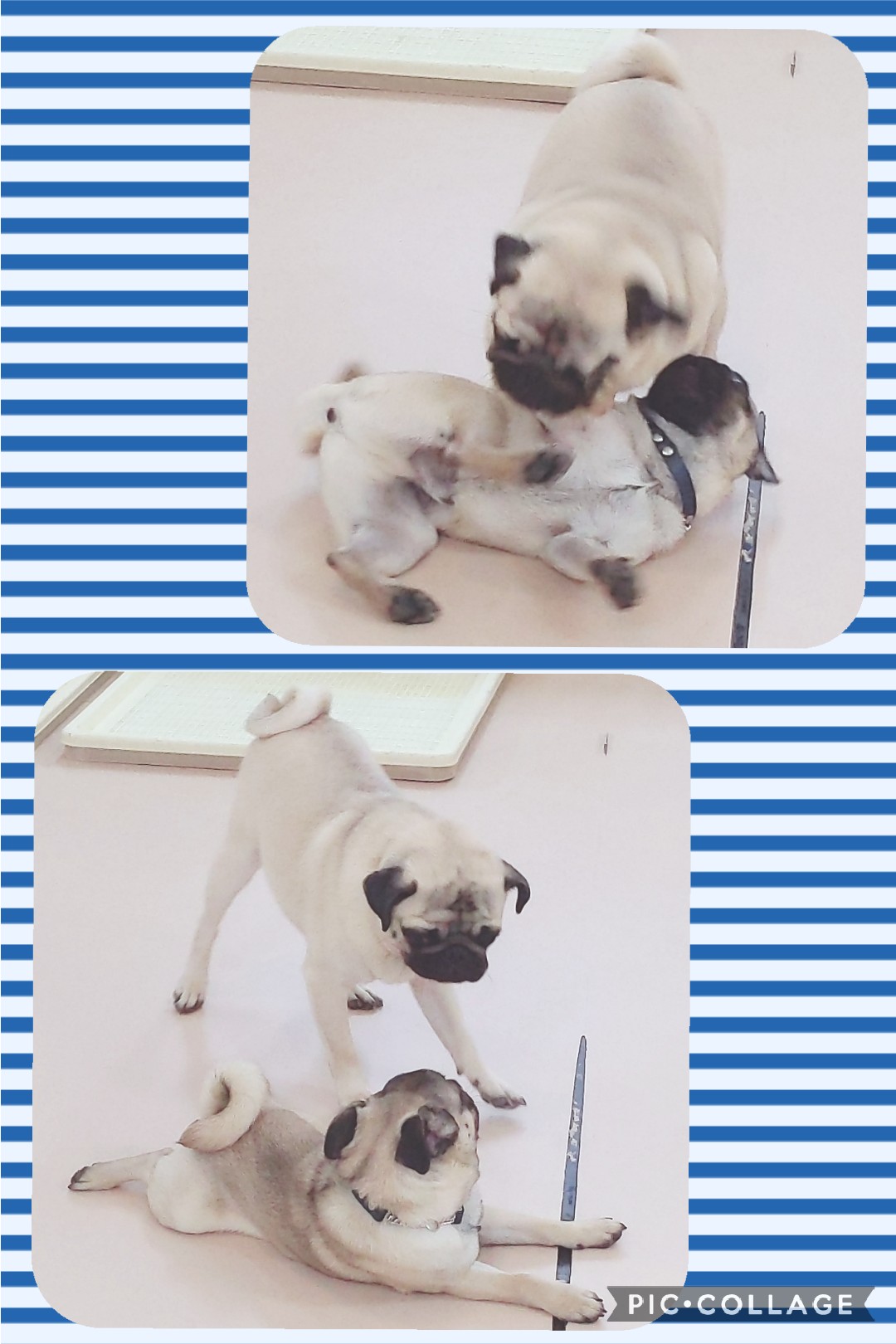 パグのちくわくん&おこげくん . . すっかり仲良くなりずっと遊んでます⁽⁽◝(……