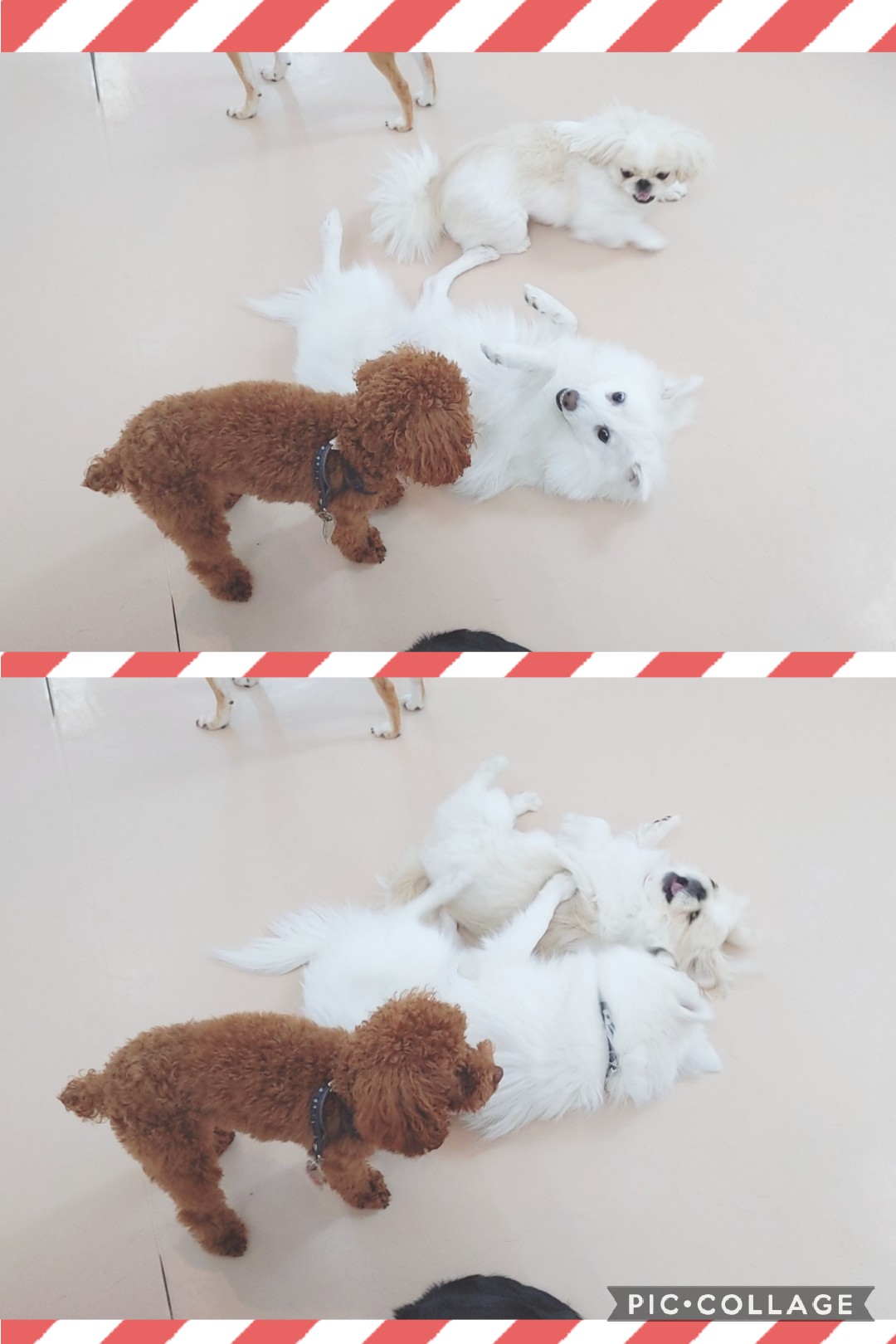 トイプードル ニコールちゃん 保護犬 モナと 仲良しに〜(●’3)♡(ε`……