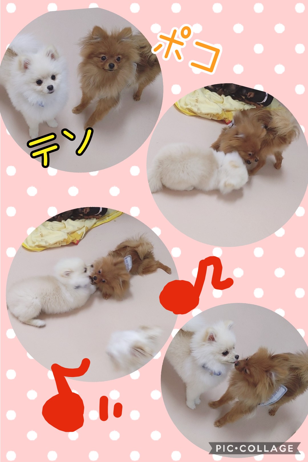 ポメラニアン テンちゃん&ポコちゃん . . 体格も歳も近く気が合うよう☆ よく……