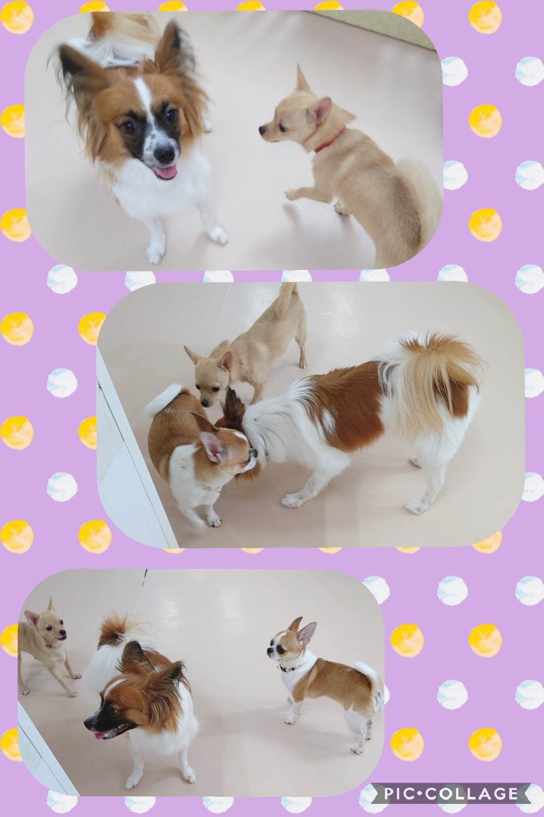 . . パピヨン コタくん チワワ ぽちくん MIX むぎちゃん . においをか……