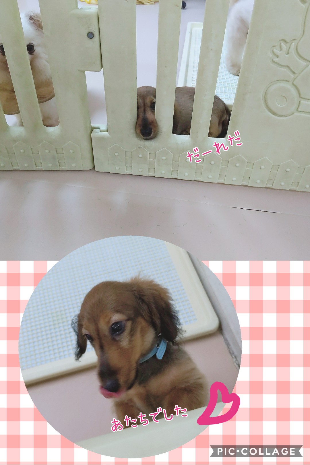 ダックス ルアナちゃん . . 休むときは柵の間に 鼻を入れます( ˘ ³˘)(……