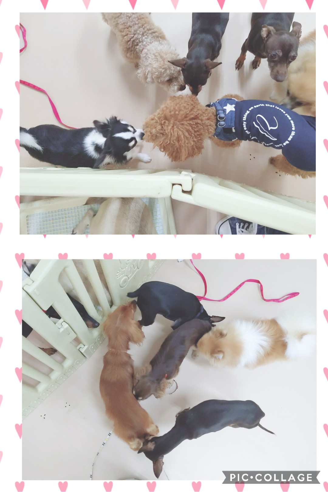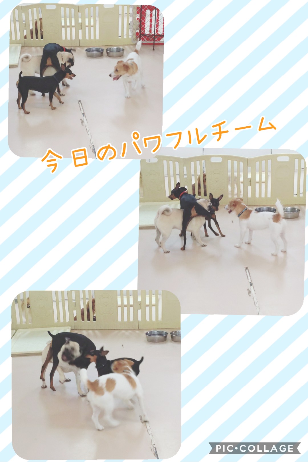 初通園だったパピヨン にこちゃん♪ . . パグのちくわ先輩から気に入られ(?)……