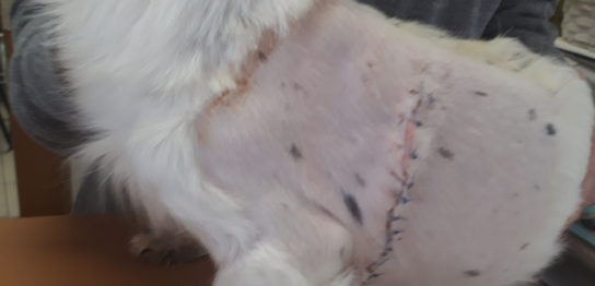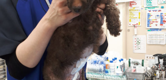 保護しましたトイプードルの女の子。 年齢も10才は越えた高齢犬でした。 お腹に膨……