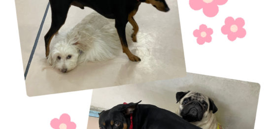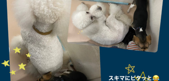 ・ ・ 土砂降りの雨でお外にも行けず… 室内でいろんな子と交流しなが……