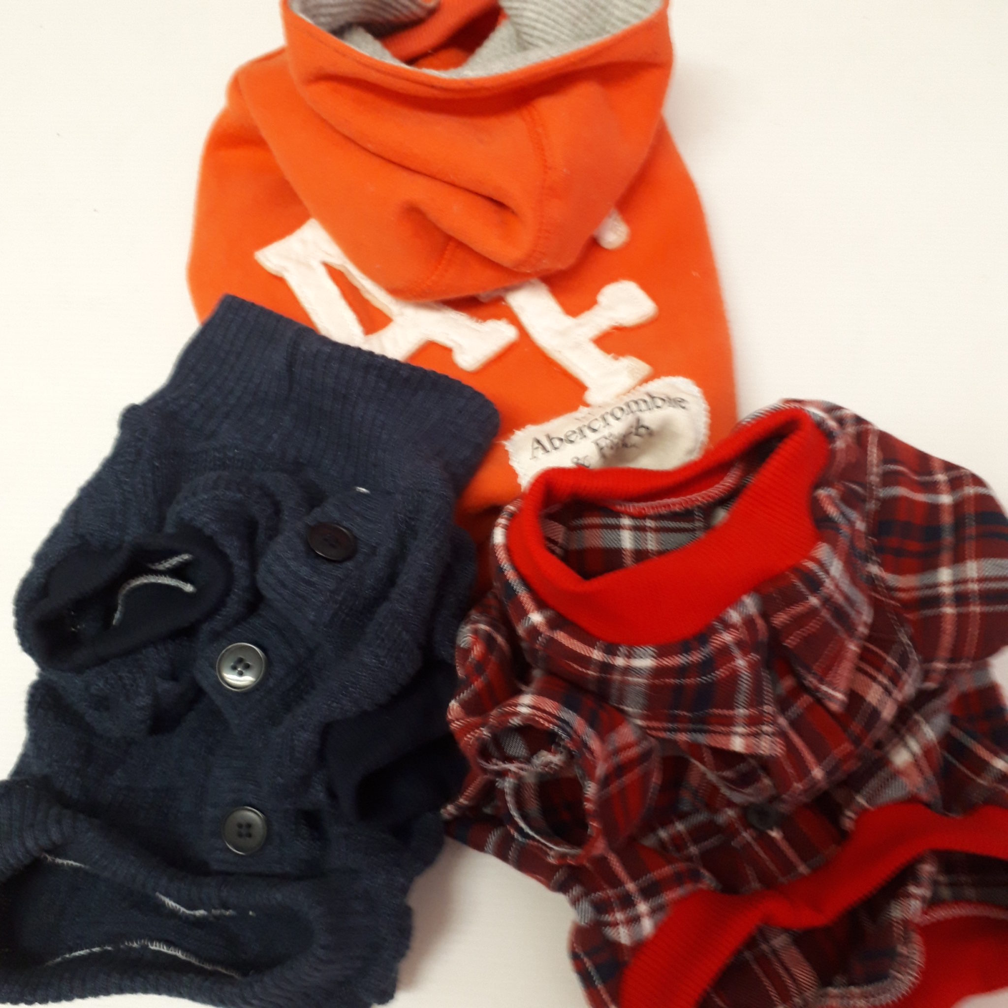 パーカーに続き、チェックシャツとニットの洋服をワンコ洋服にリメイクのオーダーです……