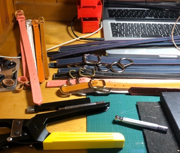 新たなデザインの首輪・リードも誕生です! こちらは、元車のエンジニア 中島氏……
