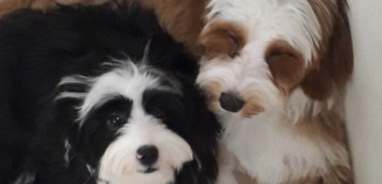 ゴールデンレトリーバーのふぅちゃんと 保護犬ジミー☆ とっても仲良しな二人です(……