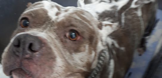 ピットブルです! 人なつこい子です! 今日はシャンプーのご予約いただきました!洗……