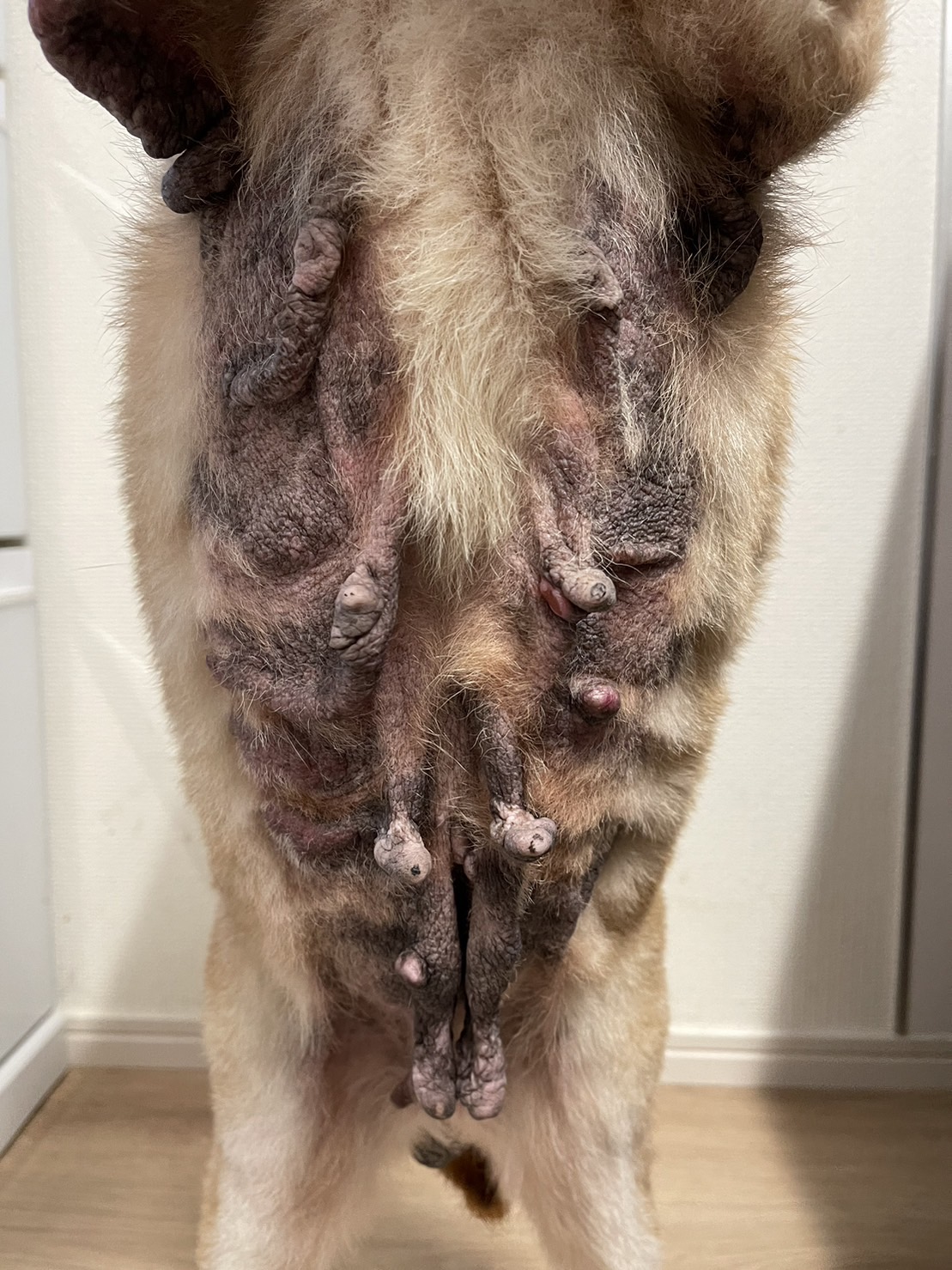 柴犬MIXの女の子は、皮膚も、耳も、お乳もそれはそれは酷い状態