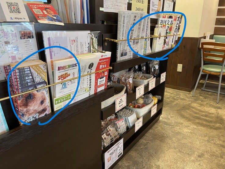 たくさんの人の目に留まるカウンターの目につくところに置いていただきました。