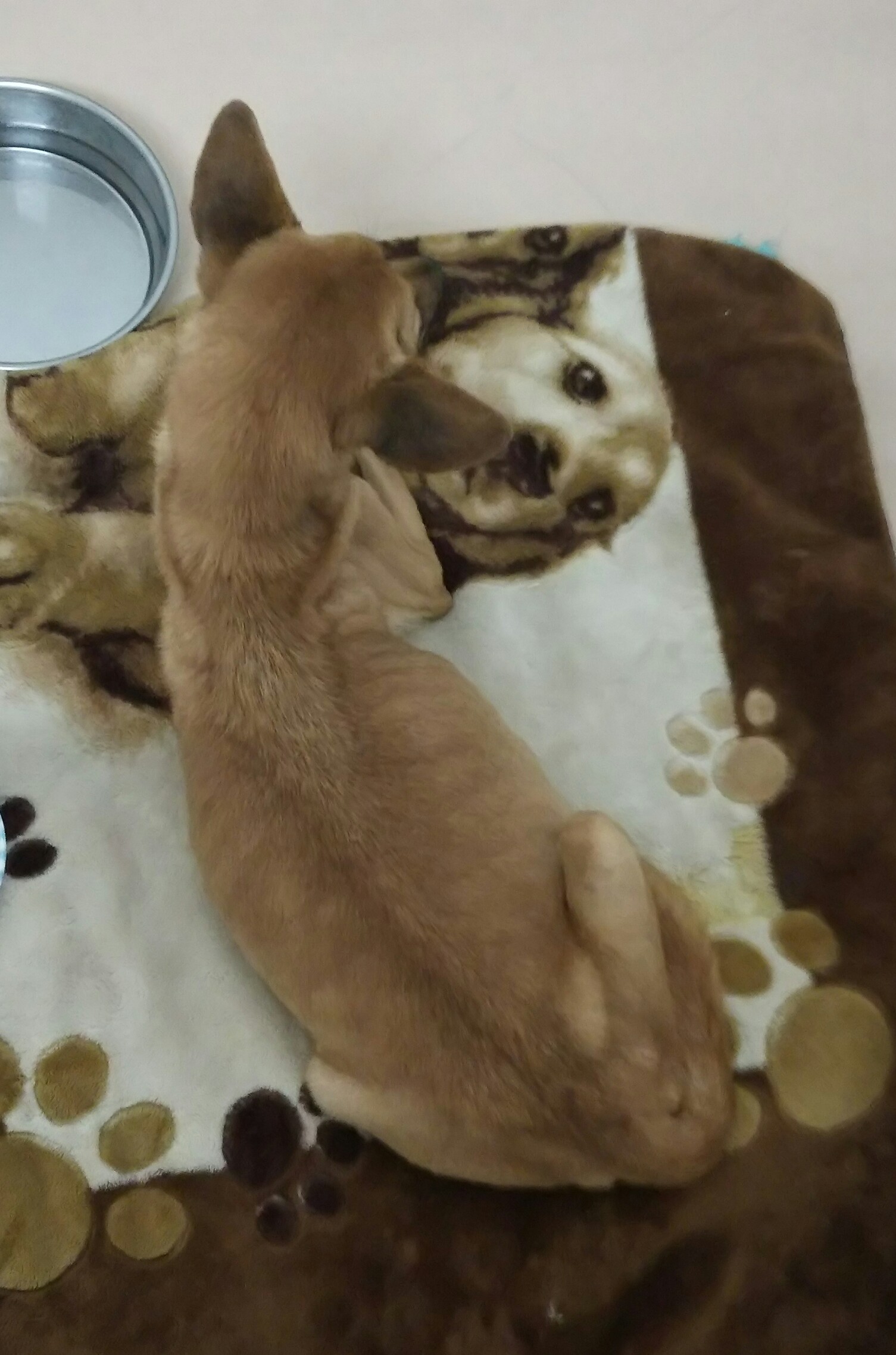 ななちゃん 2016年12月16日 保護活動ブログ 髙橋忍 腹水も抜けない状態になり「1ヶ月…」と余命宣告を受けました。 食べる量も減ってきています。今朝は、食べていた茹でササミも一欠片食べただけで、二口目から吐き出してしまいました。 余命宣告を受けた日から、栄養剤を溶かしたものをシリンジで流し込んでいます。 奈々が今、一番欲しいもの…それが何なのか分かると良いのに…と思います(_ _)