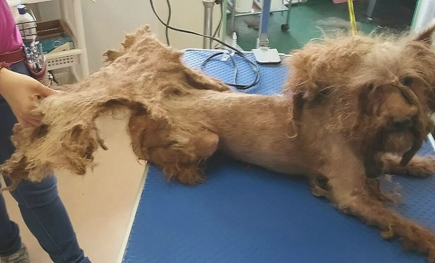 長いことシャンプーもされず毛が全部固まってしまっていたトイプードル