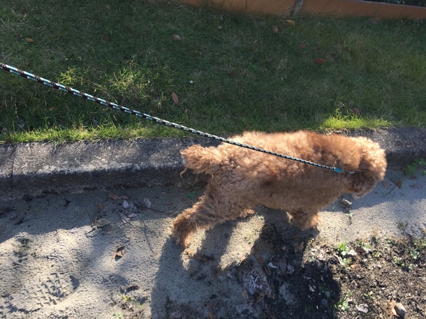 愛情は受けて育っているようで、とても人馴れしていい子なのですが、飼い主の日常生活が困難になった今年に入ってから、トリミング、病院どころか散歩も行けてないとのことで、保護してすぐ、まずは散歩に連れていきました。
