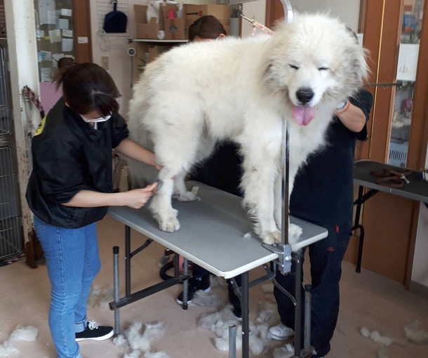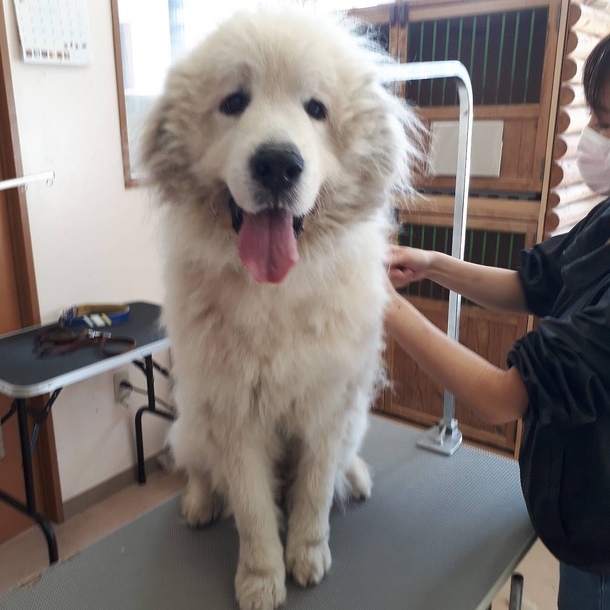昨日保護したピレニーズのハッピーのトリミングです。