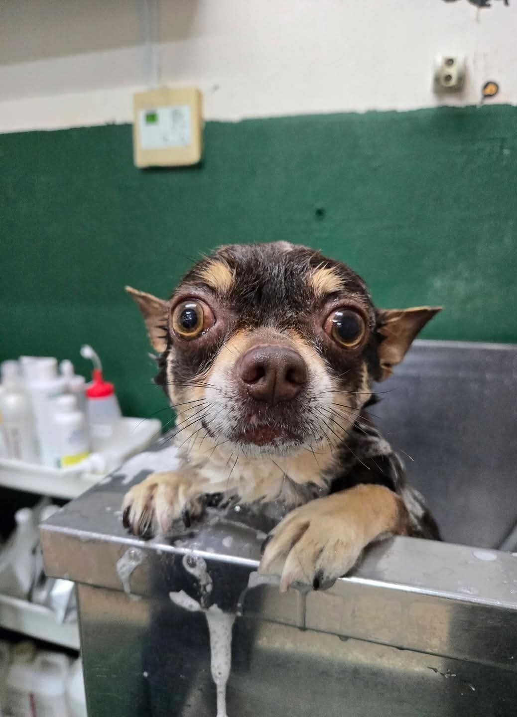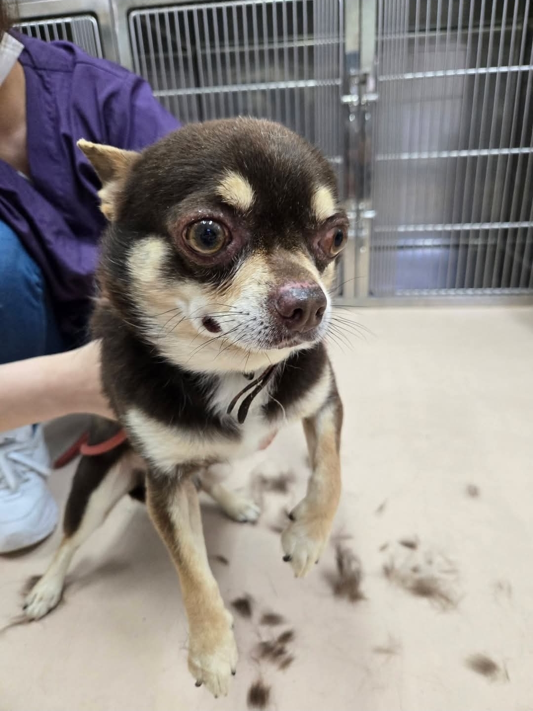 テンダーは、チワワなのに5年間ほど外で飼われていました。
