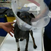 今日は、ピグ(ダックス、12歳)の歯の治療と避妊手術です。