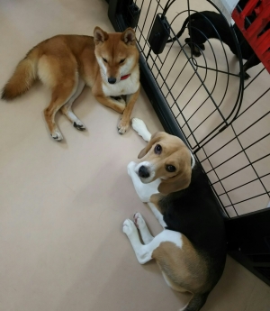 ベル! 2017年5月22日 保護活動ブログ 髙橋忍 飼い主さん側の事情で飼育拒否された、ビーグルのベルちゃん。 保育園の中で他のワンちゃんとの社会性もでき、遊んだりする姿も増えました( *´︶`*) 人に対しては、とても甘えん坊なベルです★ トライアルも無事に終わり、正式に新しい幸せなお家へと行きました!♪ヽ(´▽`)/ 写真は、ベルと保育園へ通園してくれている柴の大くんです♪
