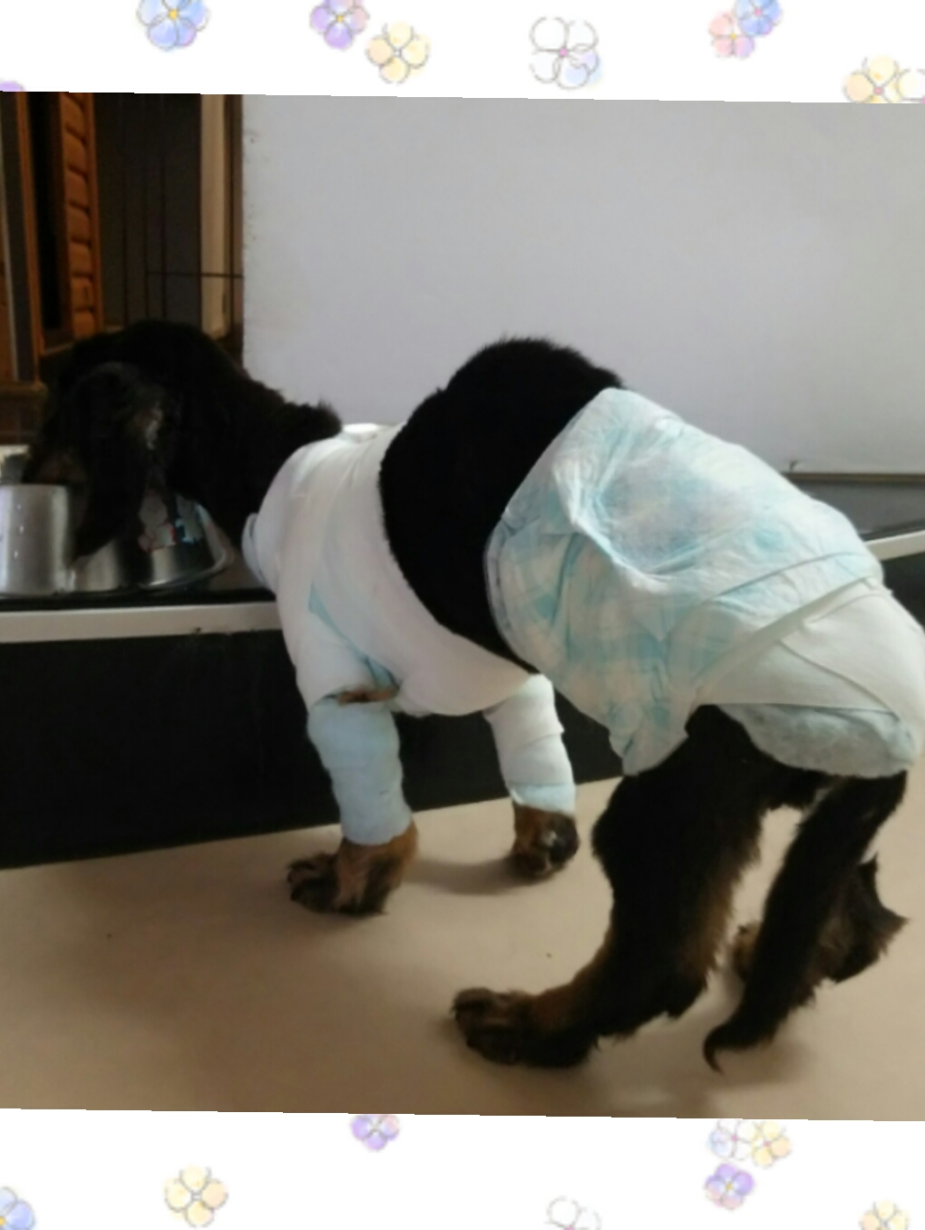 酷い環境で暮らしていた為、歯もボロボロで歯茎も腐り、後ろ足も関節が既に固まり始めていました。