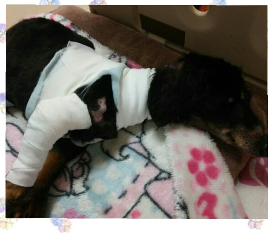 でもゴハンは毎日しっかり食べる姿で「ポッキーが生きることを望んでいる」と、とにかく毎日傷が早く塞がるように、また立てるようになるようにと1時間おきに寝る体勢の変更や栄養補給、補助で立たせること…行いました。