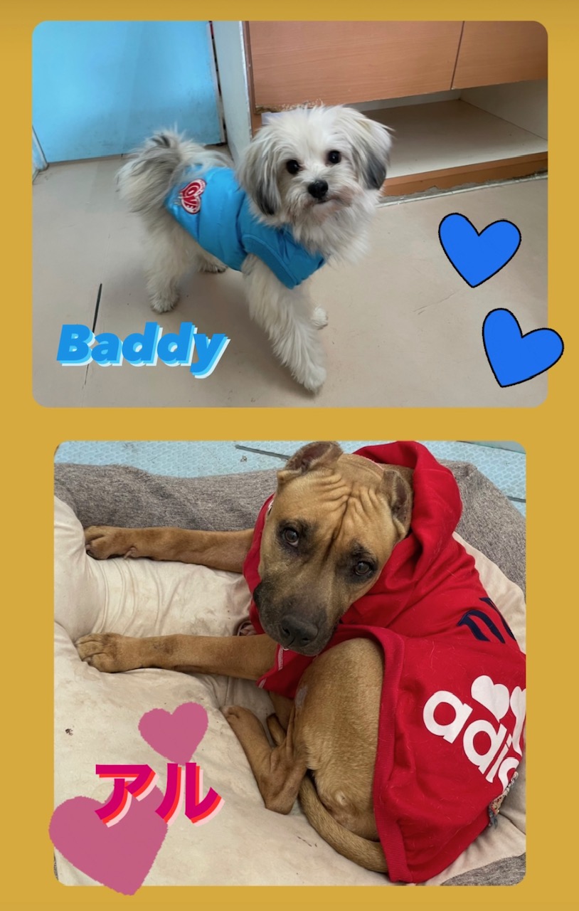 寒いので保護犬達も外に出る時はお洋服を(●´ω`●)