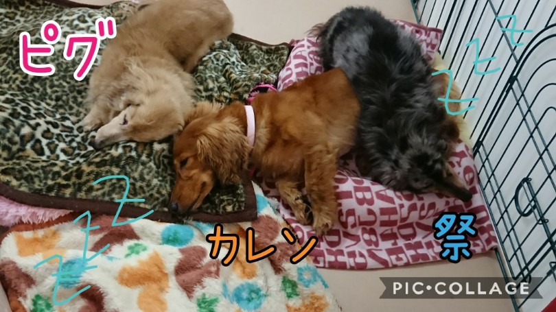 仲良しなのはいいんですが、、、 2018年9月21日 保護活動ブログ スタッフ高木 寝づらくないですか、、(´・ω・`)? カレンの上に祭が乗っかっちゃってます(´・ω・`) ピグもお顔の向きがおかしくない(´・ω・`)? まあ、、気持ち良さそうに寝ているので そっとしておきます(o^-^o)