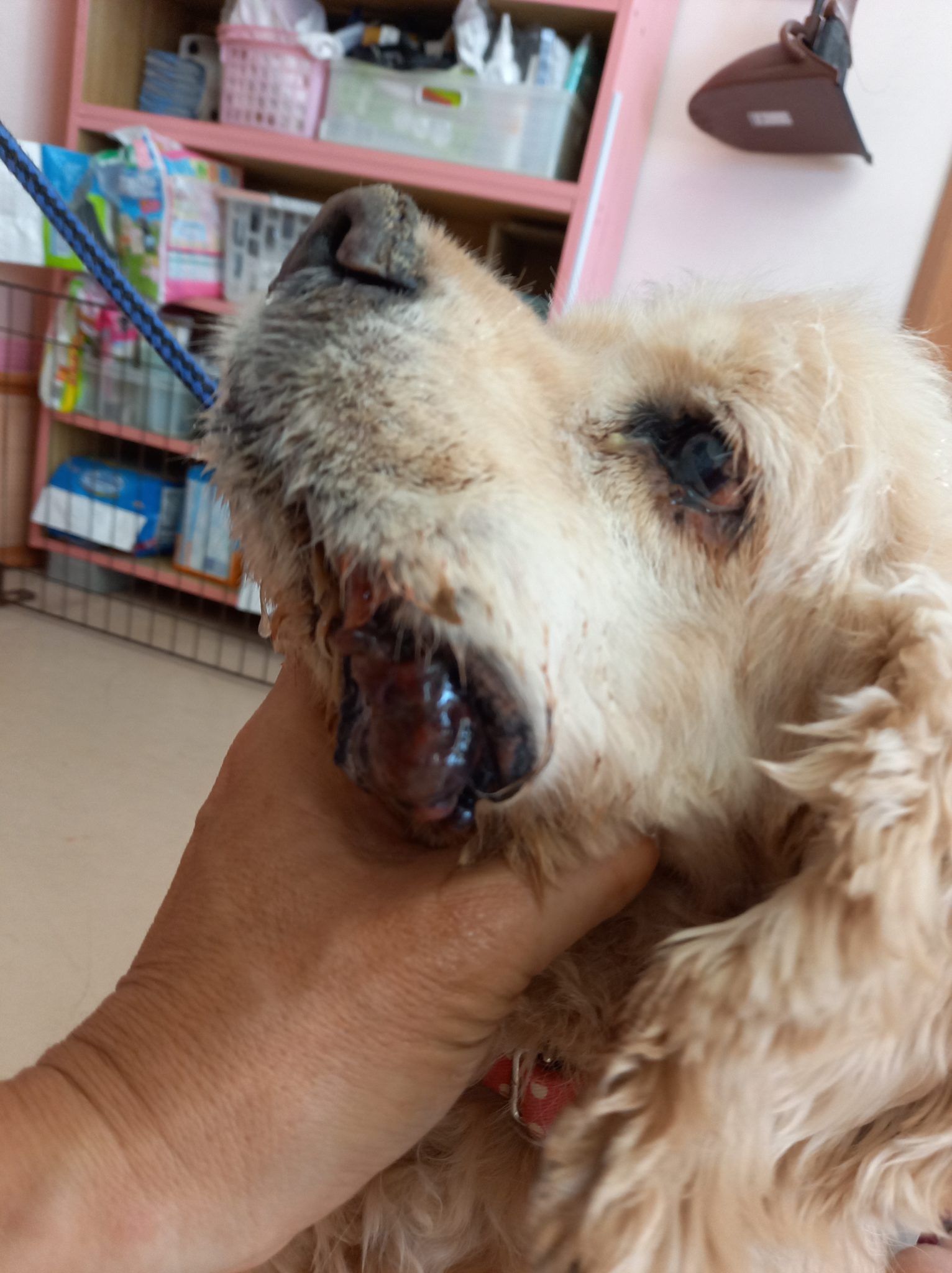 アメリカコッカの男の子で高齢ですが、口に腫瘍があり、何度も病院に行くように話しましたが、連れて行きません。