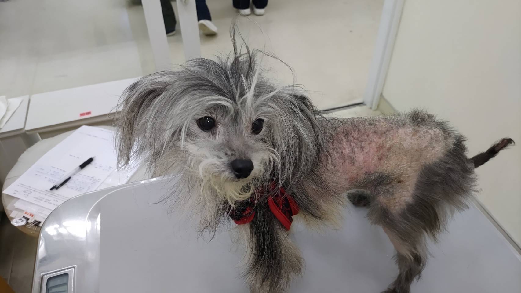 この子もかゆくてかきむしるからなおさら毛がなくなり、