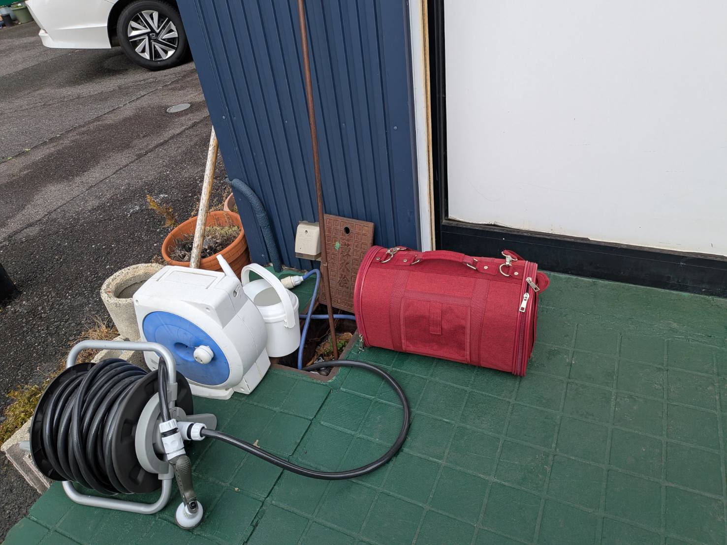 朝、ドッグデュッカのスタッフ出入口の角に、トイプードルの子がキャリーに入って遺棄されていました。