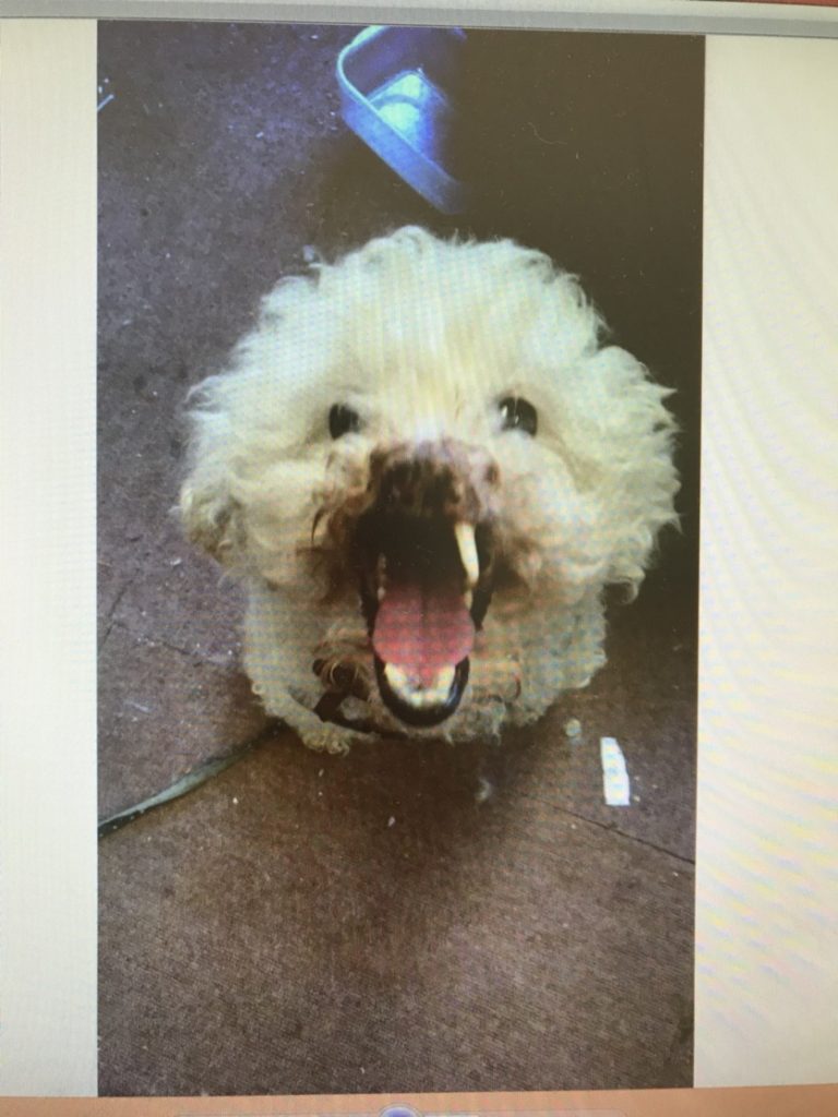 トイプードルの子の鼻が噛みつかれてもげている!