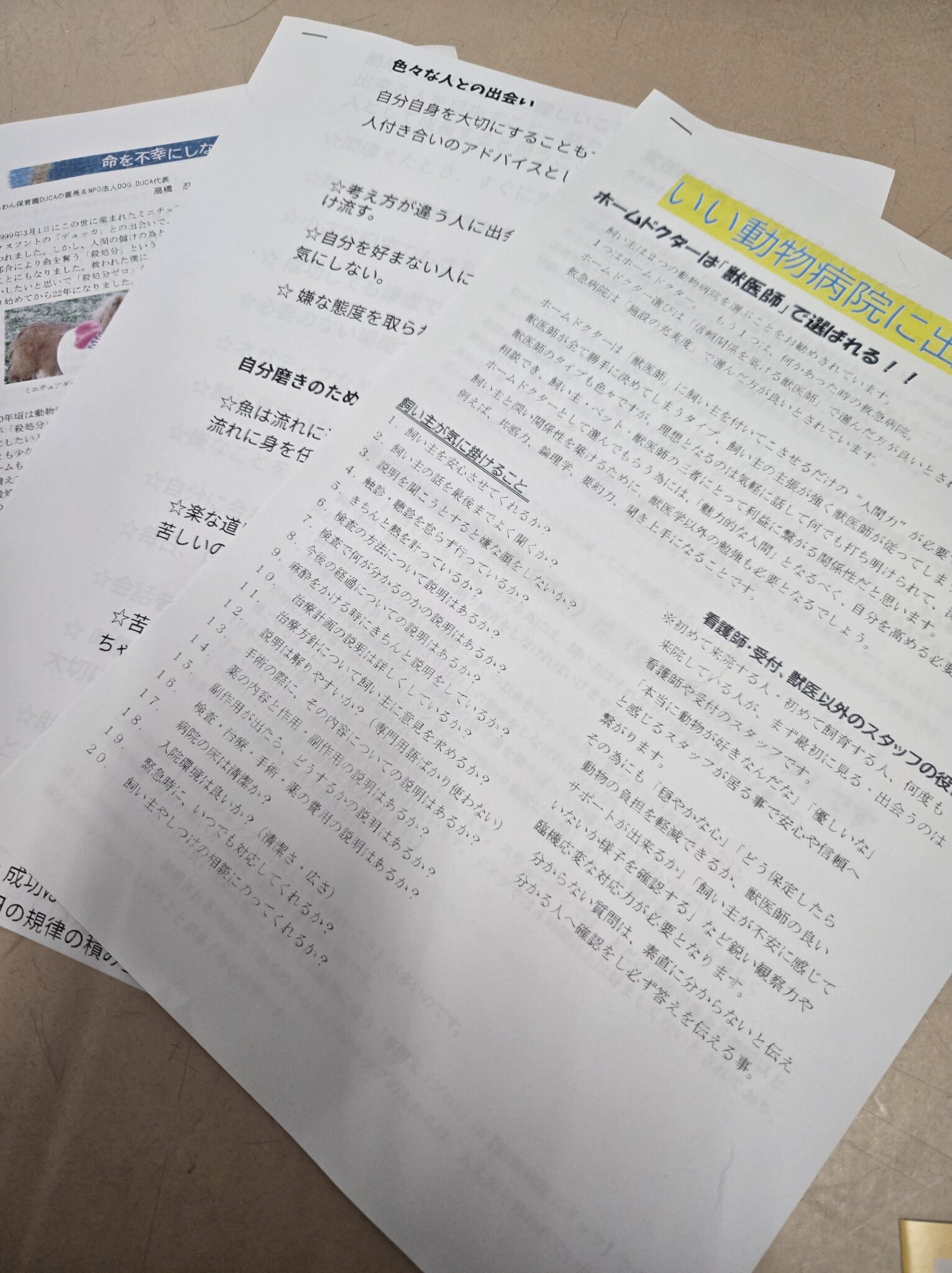 獣医師以外の受付、看護士など全てのスタッフさんの人柄、安心感、心の豊かさなど、病院に入った時の空気が大切なように思います。