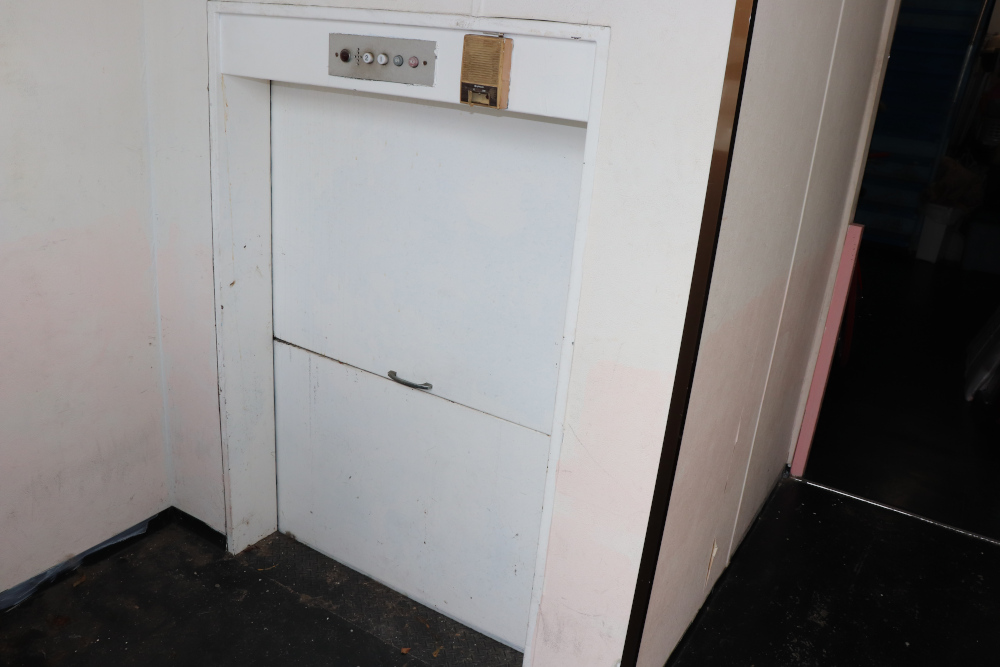 昔は別のテナントが入っていて、物品を2階に持ち上げる用のエレベーターを使ってたんですね。