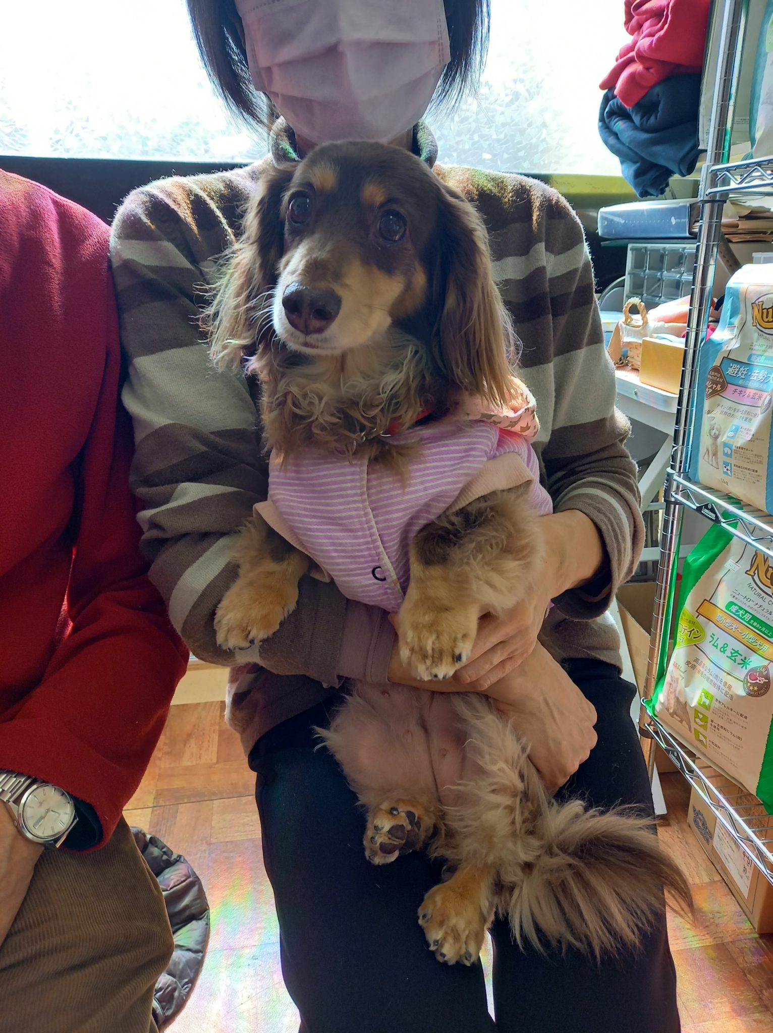 親が飼えないからと娘の家の玄関に繋いでいかれたダックスの女の子