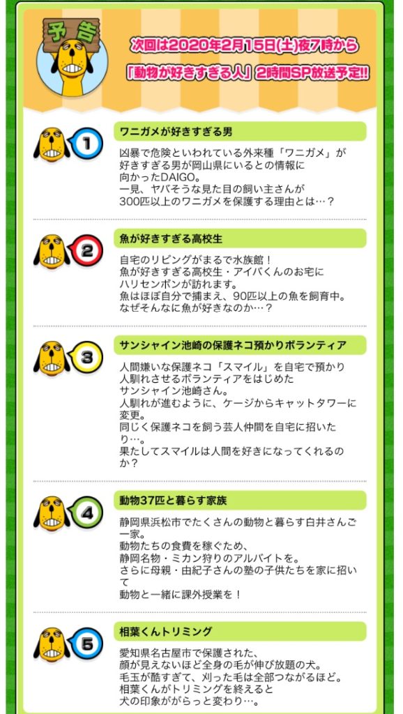 夜7時から日本テレビ系で、「動物が好きすぎる人」2時間スペシャルです!!