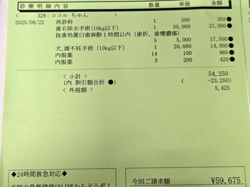 【本日の治療費】