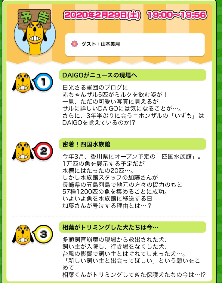 (今月、志村どうぶつ園2回目です!)
