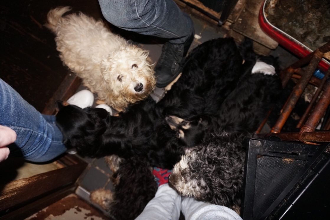 玄関に入ると一斉に犬が寄って来ます。多頭飼育の場合の共通が、みんな愛情に飢えていて、構ってー と人なつこいんです。