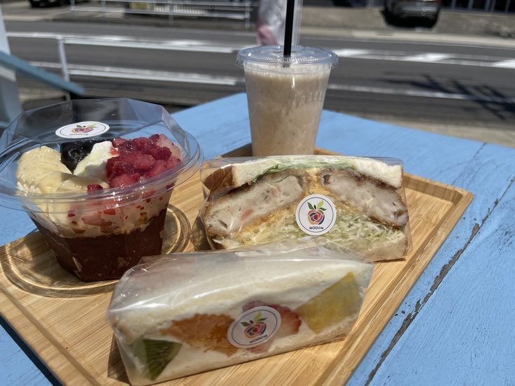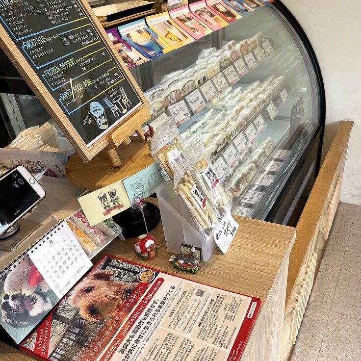 フルーツサンド(と惣菜サンド)の人気店で、常時20種類以上のサンドが並ぶ、テイクアウトのお店ではありますが、わんこ入店OK(テラス席での飲食も可)です。
