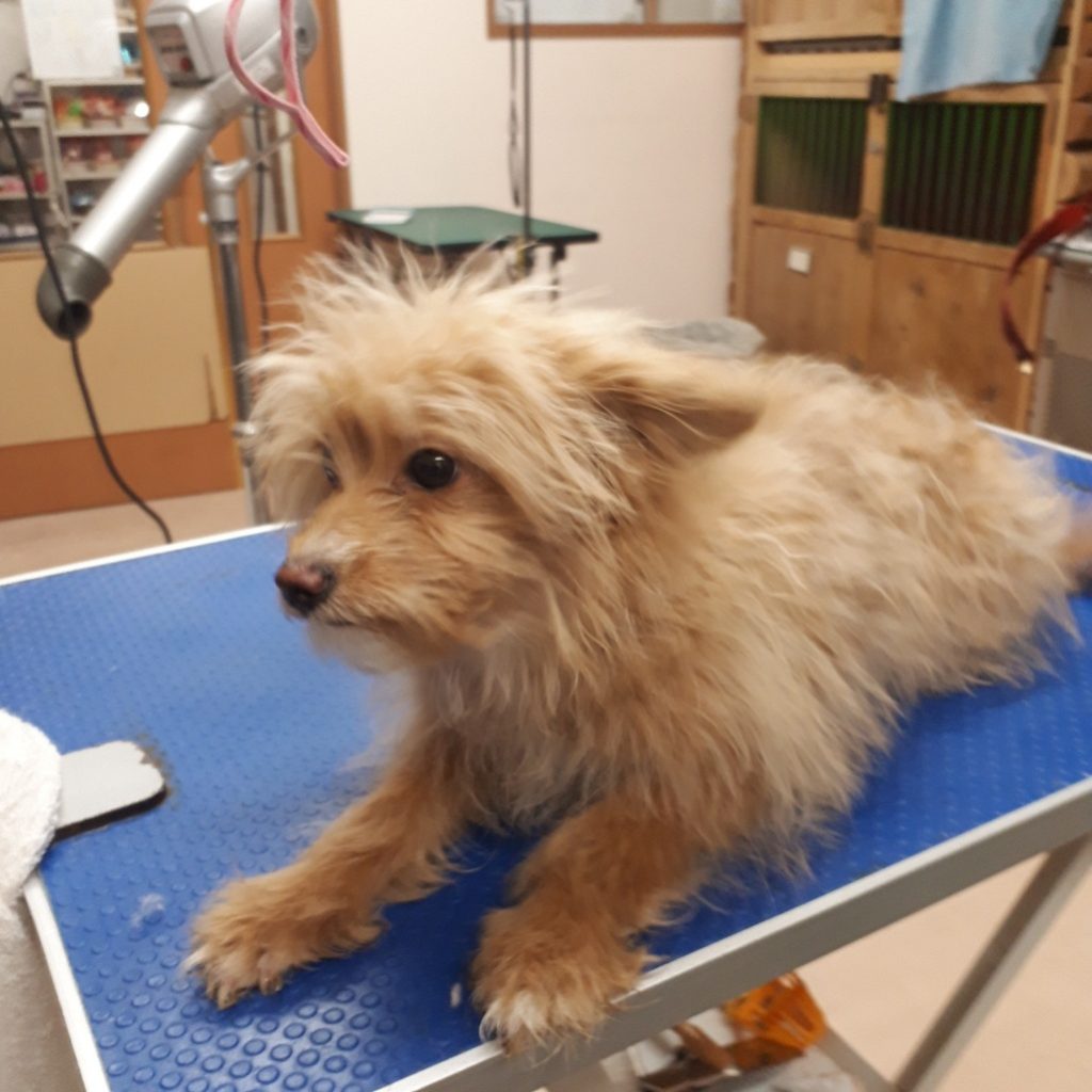 毛もボサボサで汚れ、直ぐに綺麗にトリミングです!
