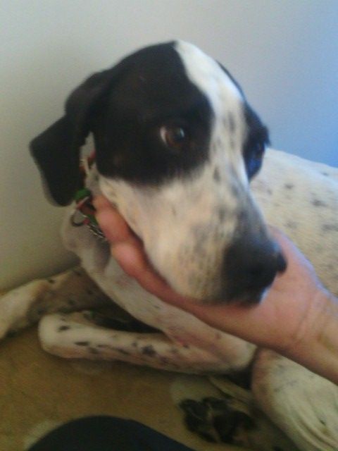 次の朝、飼い主に連絡がとれ奥さんが迎えにきましたが、飼い主に対してものすごい怯えと震え!