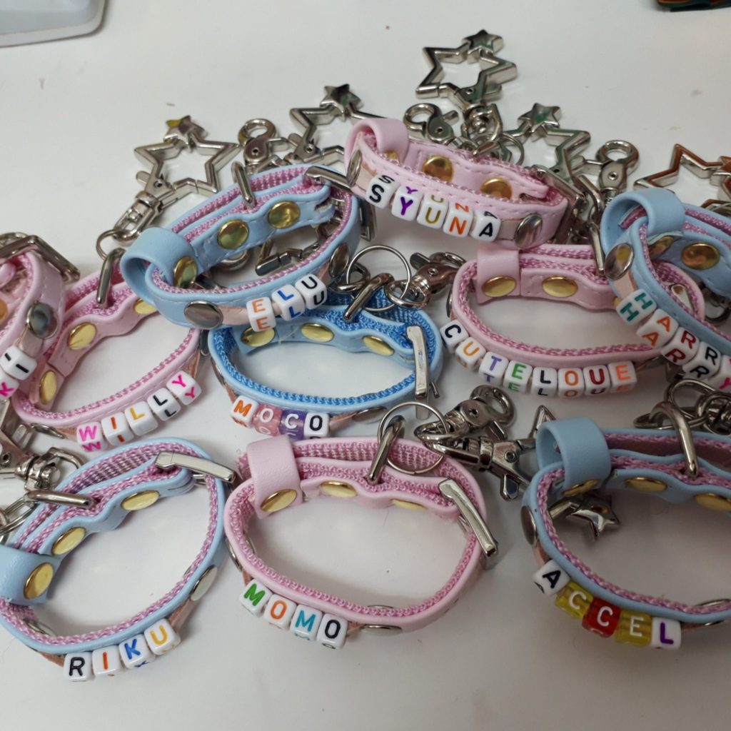 これら守ってくれるカギを付けて頂く為の首輪と同じ作り方のキーホルダーです!