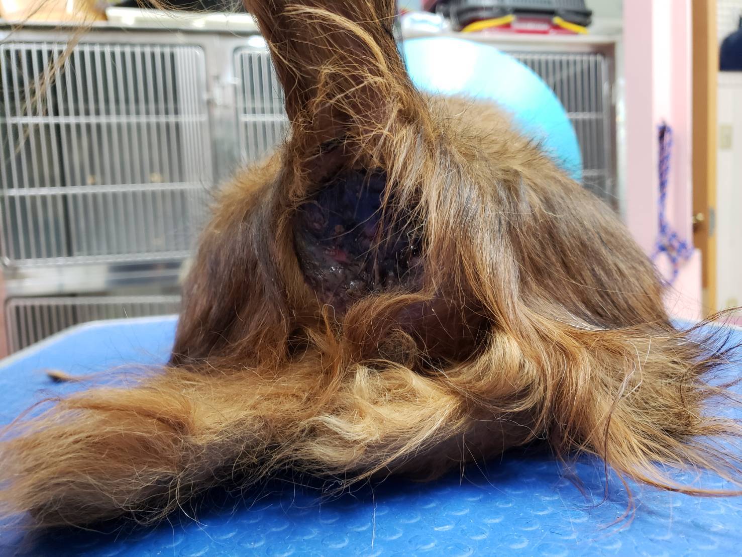 尻尾は大きな腫瘍が出来て腫れ上がり、