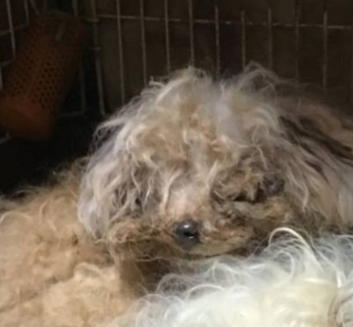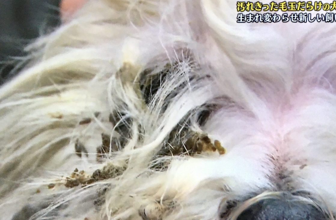保護犬の状態はとてもひどく、相葉さんに早朝からお越しいただき、長い時間をかけてトリミングしてもらいましたが、その後すぐに、動物病院に連れて行き、血液検査、レントゲン、エコー等々すべて検査した結果、心臓の雑音がひどく心臓病と思われ、以来、4日ごとの経過観察で病院に通っています。