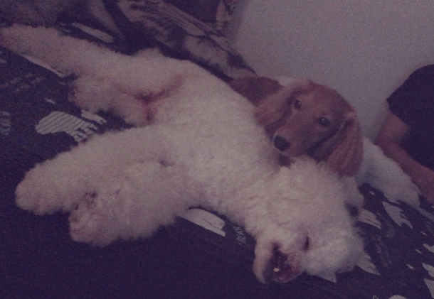 ダックスと一緒に遊べそうな子といえば・・・そう、ホープとクレール!(タクはまだ体重を増やしてる段階です)