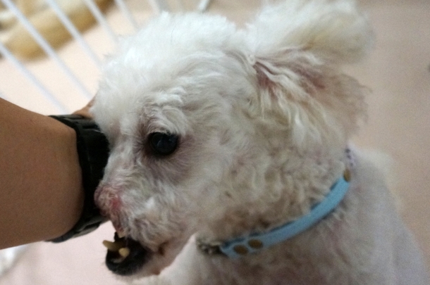 トイプーの方は、飼い主さんにやられたのか、マズルがもげた状態で、生活に支障はない状態でしたが、見た目が痛々しい・・・。