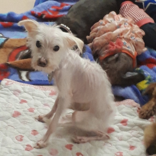 こちらも残された犬がおり、一頭がプロジェクトページでも紹介した、理想体重が3.5kgなのに、2kgしかなかった、ビションフリーゼのMIX、タク。