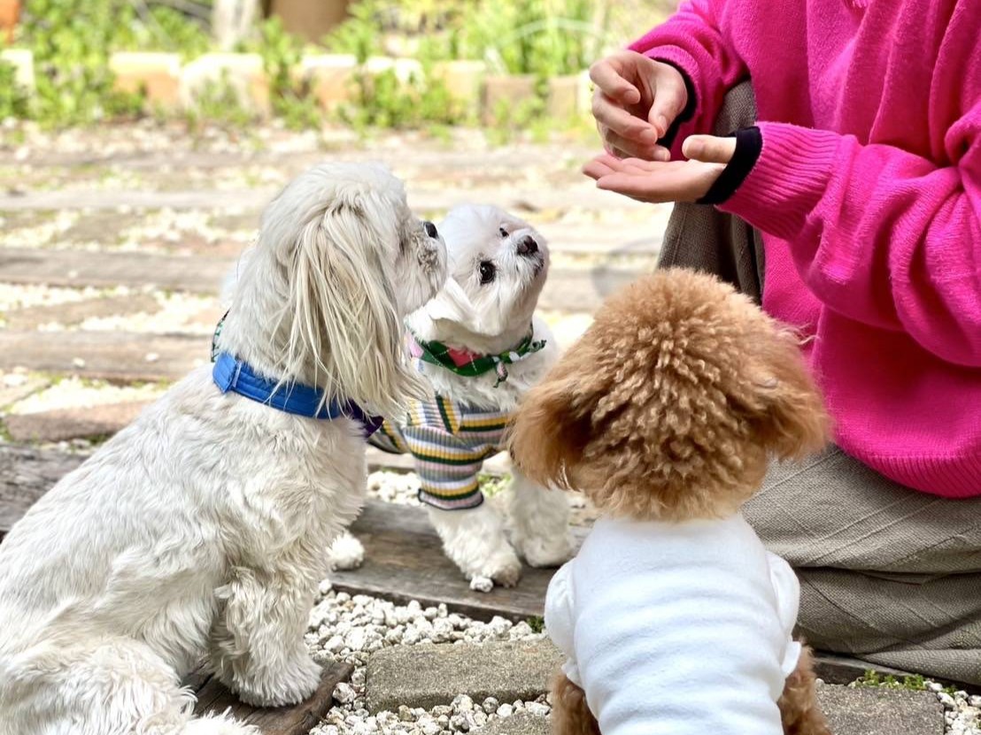 母が用事がある時は私たちがアロハの面倒をみ、家族の繋がりもさらに深まりました。アロハと、お姉さんの子わたあめ、自身の子ソルテ、いずれも保護犬です 年齢に限らず 動物を迎え入れるのは簡単なことではありません。