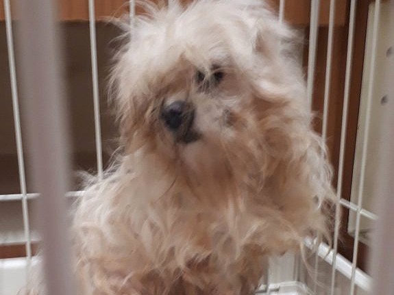 アロハはずっと儲け主義のブリーダーの元、繁殖犬として、ケージに閉じ込められ、劣悪な環境で、汚いまま、産めなくなるまで子どもを産まされ続けました。