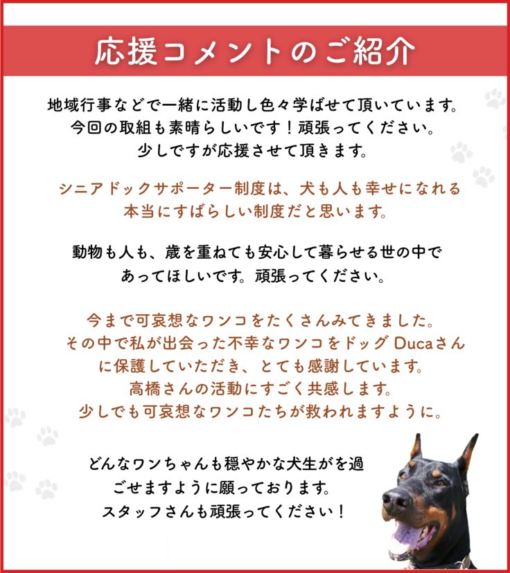 私たちの「シニアドッグ・サポーター制度」は、ただ犬を救うだけでなく、犬との暮らしを望む高齢者の方々の生きがいにも繋がる、双方にとって幸せな仕組みだと信じています。